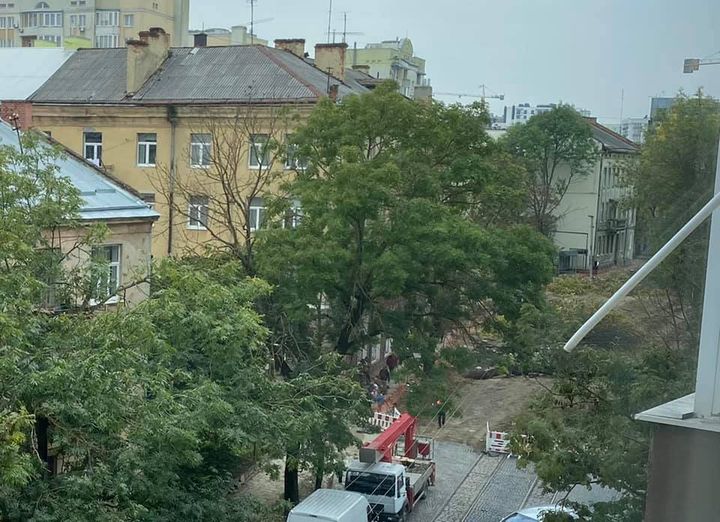 У Львові на тій ділянці вул. Шевченка, де ведеться реконструкція, зрізають дерева.