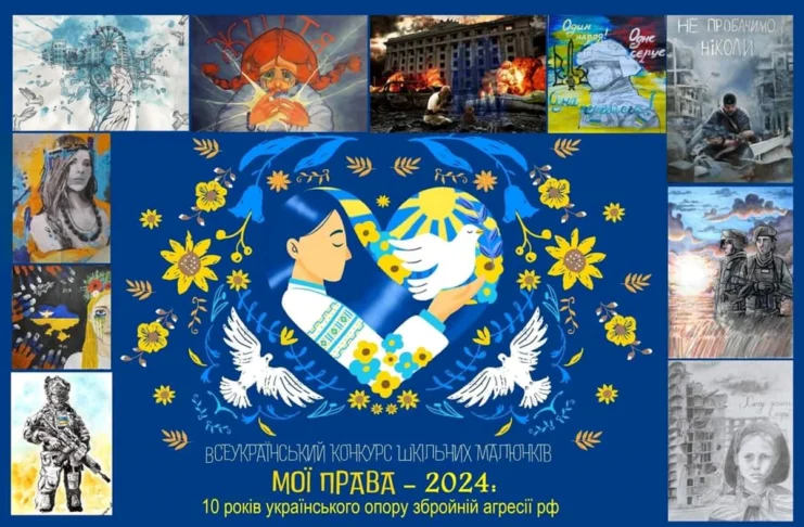 Цього року проводять XVІІ Всеукраїнський конкурс шкільних малюнків «МОЇ ПРАВА-2024: 10 років українського опору збройній агресії рф» з нагоди Міжнародного дня захисту дітей. Зокрема, спеціальну номінацію організатори конкурсу передбачили для школярів, що проживають за межами України.