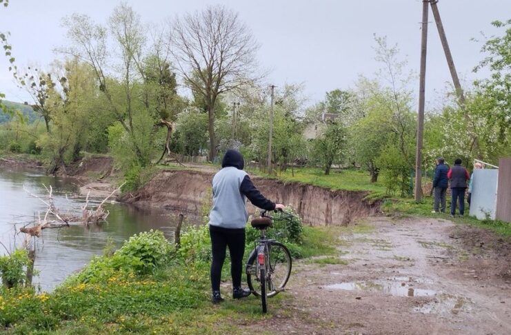 За словами місцевого мешканця Петра Савчака, від берега річки, що зараз посеред його подвір’я, до його будинку близько десяти кроків. Чоловікові 84 роки.