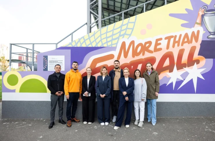 «Ми вирішили відновити улюблене місце тренувань для юних гравців.Також вдалося додати стадіону яскравого акценту у вигляді сучасного муралу. «Більше ніж футбол» – така назва роботи українських художників, братів Сергія та Віталія Грехів. Під їхнім кураторством свої малюнки та автографи на муралі залишили також гравці місцевої дитячої футбольної команди «Фенікс»», — написала перша леді Олена Зеленська на своїй офіційній facebook-сторінці.