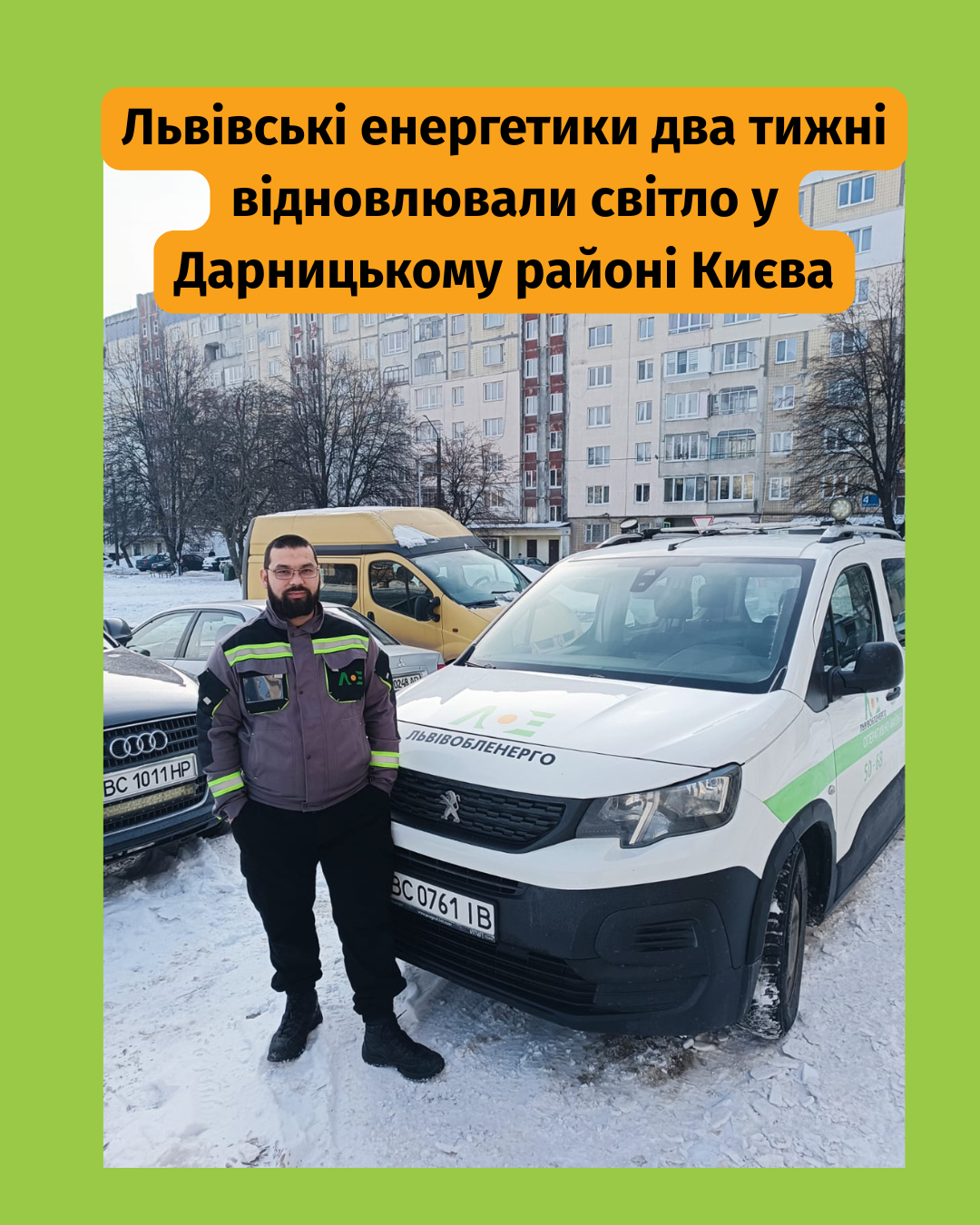 Працівники львівських міських електромереж “Львівобленерго” два тижні відновлювали електропостачання у житлових будинках Дарницького району Києва, де через бойові дії зникло світло, опалення та базові зручності. В умовах повітряних тривог і загрози балістики наші енергетики продовжували працювати, адже від цього залежав комфорт сотень мешканців.