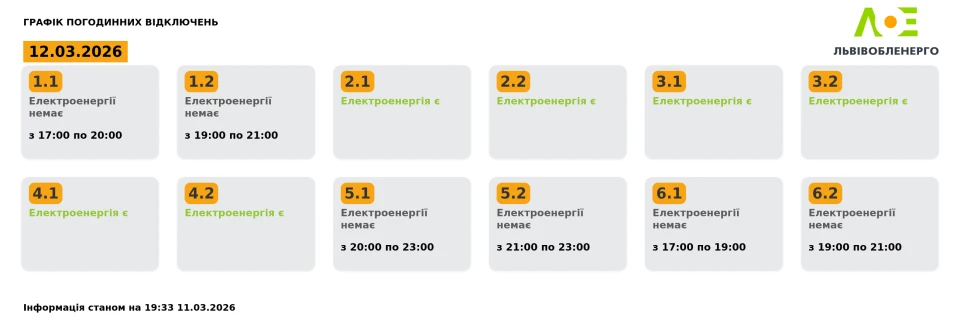У Львові та області сьогодні запроваджено графіки відключення електроенергії для шістьох груп.