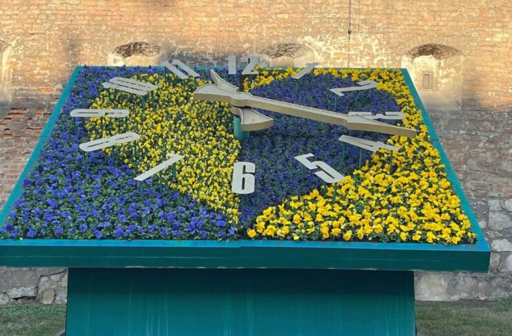 Квітковий годинник на площі Митній вже у синьо-жовтих віолах