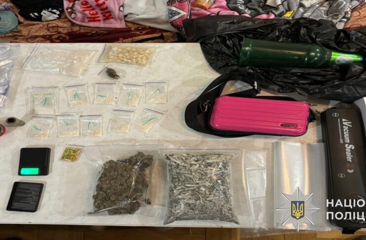 Під час санкціонованих обшуків у помешканнях затриманих поліцейські виявили та вилучили: пакунок з речовиною, схожою на наркотичний засіб «канабіс», пакунок з псилоцибіновими грибами, таблетки MDMA, пакунок з речовиною, схожою на психотроп PVP, 10 зіп-пакетів з речовиною, схожою на психотроп мефедрон, марки LSD, засоби для фасування та інші речові докази їх протиправної діяльності. Усе вилучене скеровано на експертне дослідження. Приблизна вартість вилучених речовин за цінами «чорного» ринку становить понад 300 тисяч гривень.